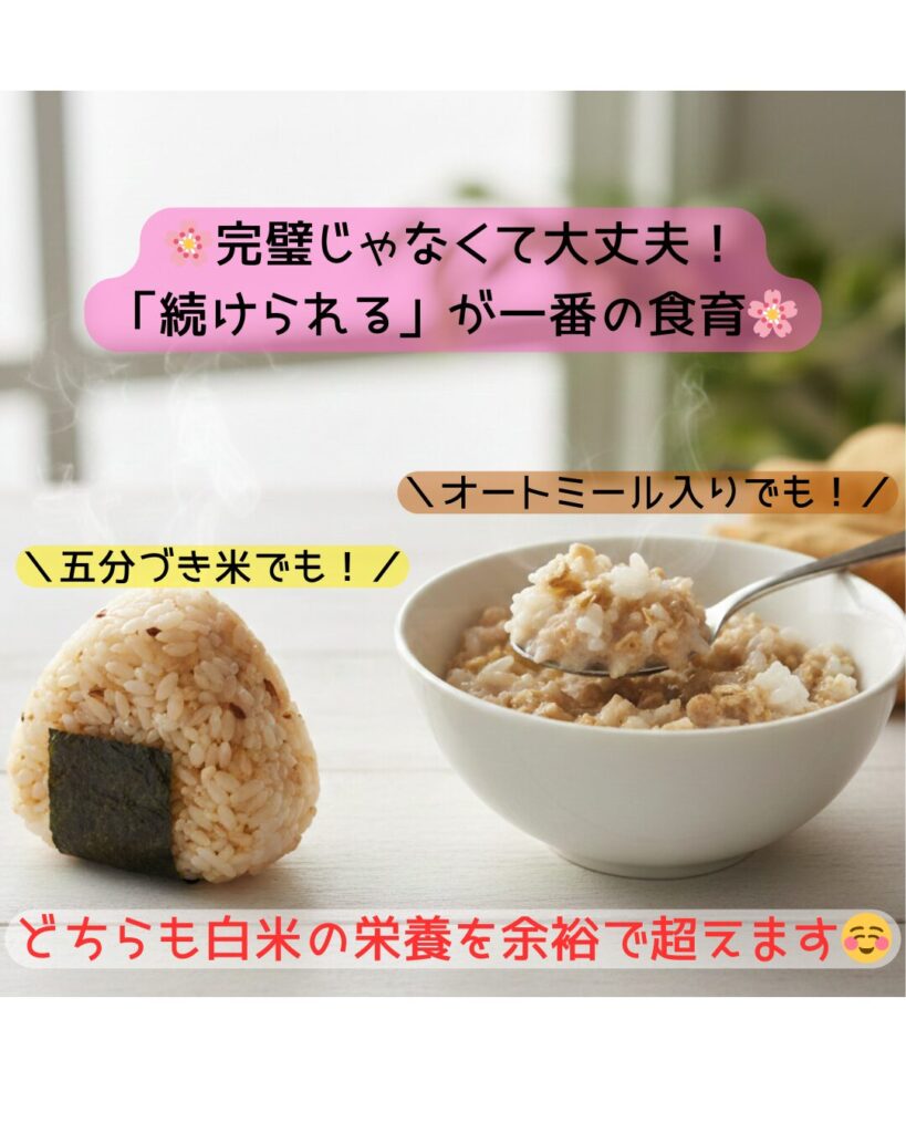 五分づき米もオートミール入りご飯も、白米よりずっと栄養満点なのは間違いありません!
