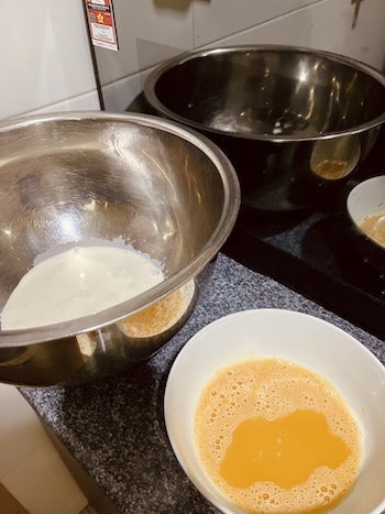 以前レシピ通りに作ったら卵の味が強かったので、今回は卵黄を1つ減らして調整。