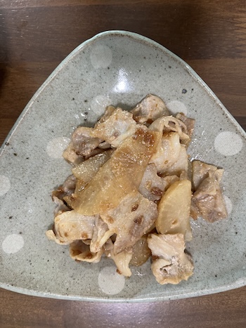 大根と豚バラの炒め物+ご飯。