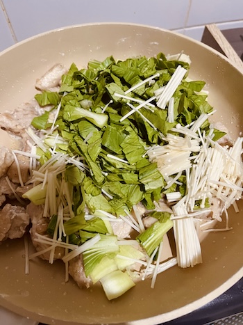 味噌汁用のえのきを少し加えて、カルシウム×ビタミンDを意識した組み合わせに